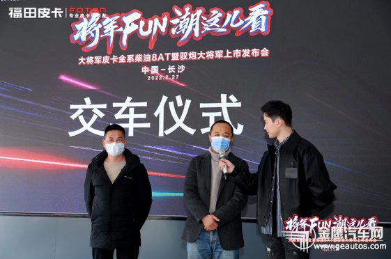 年輕時(shí)尚 以客戶需求出潮品 馭炮大將軍的亮相,將整場(chǎng)活動(dòng)的氛圍推向了高潮;顒(dòng)現(xiàn)場(chǎng),福田汽車集團(tuán)皮卡事業(yè)部湘鄂贛戰(zhàn)區(qū)總經(jīng)理李明為大家解讀了馭炮大將軍無極限的產(chǎn)品實(shí)力。作為一款極具年輕時(shí)尚的高端皮卡,馭炮大將軍有著引領(lǐng)不斷前行的無界能量、走在潮流前端的無敵原創(chuàng)外形、無比安全的全面守護(hù)、彰顯高端皮卡的無暇內(nèi)飾、聰穎便捷的無窮智慧以及激發(fā)探索皮卡美好生活的無限精彩。作為福田皮卡新戰(zhàn)略發(fā)布后的首款車型,馭炮大將軍忠于原創(chuàng)且崇尚潮流,在諸多高科技和高配置的賦能下,將引領(lǐng)消費(fèi)者探索“8AT+∞”更多的未知場(chǎng)景與空間。  【車型講解】  【長(zhǎng)沙首批車主喜提新車】  【車主感言】