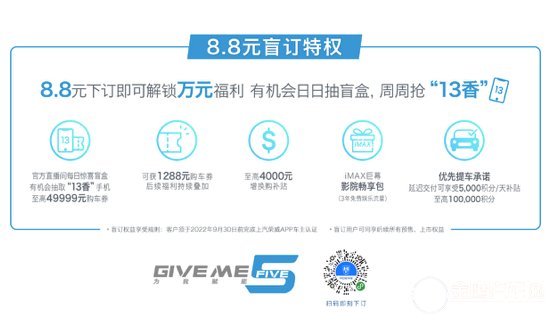 【全新第三代榮威RX5/超混eRX5雙車齊發(fā)】 上汽乘用車公司副總經(jīng)理孫亦炯化身“威5超感寵粉官”,揭曉雙車盲訂價(jià)格,并公布“威5超感寵粉計(jì)劃”,8.8元下訂即可解鎖5大特權(quán)萬元福利,包括官方直播間每日驚喜盲盒(有機(jī)會(huì)抽取“13香”手機(jī)、至高49,999元購車券)、1288元購車券(后續(xù)福利持續(xù)疊加)、至高4000元增換購補(bǔ)貼、iMAX巨幕影院暢享包(3年免費(fèi)娛樂流量)、優(yōu)先提車承諾等,美好的智慧出行生活觸手可及。
