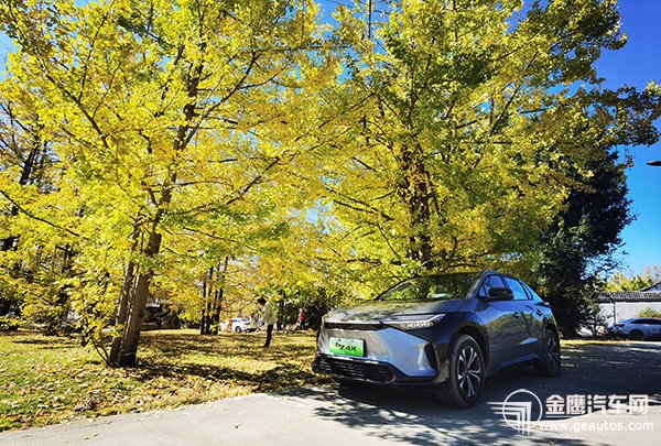 把廣汽豐田bZ4X停在銀杏樹旁,在陽光的照射下,造型充滿力量感和科技感。錘形鯊魚式前臉,多眼式LED前大燈,凌厲的LED光劍式尾燈,舒展動感的車身流線,無不彰顯其極具魅力與新潮的高級質(zhì)感。
