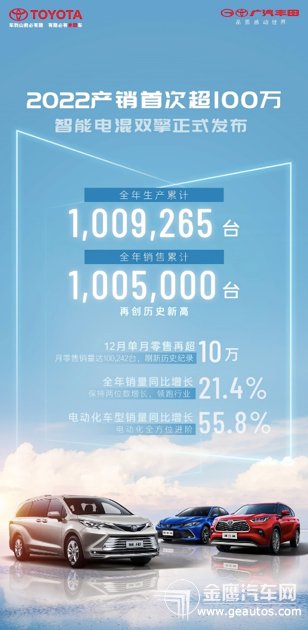 不平凡的2022落下大幕,受疫情、缺芯、原材料漲價、局部斷電等多重因素影響,汽車行業(yè)承壓前行。面對重重挑戰(zhàn),車市格局分化加劇,頭部陣營重新洗牌,合資品牌遭遇雙重擠壓,多數車企滑坡下探甚至陷入負增長。而廣汽豐田在車市一片頹勢之下,基于高起點實現高質量逆勢增長,全年銷量首次突破100萬臺,達1,005,000臺,創(chuàng)下歷史新高,成為2022年唯一挺進“百萬俱樂部”的日系合資車企。廣汽豐田以同比21.4%的增速位居合資第一,連續(xù)3年保持高速增長,實現從2019年68萬臺到2022年超100萬臺的跨越式增長,在變局中開創(chuàng)新局,彰顯了良好的發(fā)展韌性,有力提振行業(yè)信心,鼓舞合資陣營。 在2022年廣州車展上,廣汽豐田雙擎品牌煥新為“智能電混雙擎”,推出全新第五代 “智能電混雙擎”,同時帶來“T-PILOT 智能駕駛輔助系統”、“T-SMART 智能座艙”和“T-LINK 智能互聯”三大智能化技術。廣汽豐田以頭部產銷規(guī)模、高含金量產品結構和全方位的電動化、智能化布局,向合資 “新頭部”大步邁進。 高速增長與高質量銷售并重,百萬產銷“含金量”成色十足 2022年,面對多重挑戰(zhàn),廣汽豐田迎難而上,通過不懈努力,全年保持熱銷勢頭,12月單月零售銷量更是再超10萬臺,達100,242臺,刷新單月零售歷史紀錄。廣汽豐田在高基數的規(guī)模上保持兩位數增長,增速遠超行業(yè)大盤,躋身“百萬輛俱樂部”。在國際國內市場環(huán)境急劇變化的背景下,這一成績的取得更顯含金量。廣汽豐田正在拉大與日系合資車企陣營競爭對手的優(yōu)勢,鎖定日系合資車企領頭羊的角色。  可貴的是,廣汽豐田實現了量的強勁增長與質的有效提升并重,高端化表現十分亮眼。在2022年銷量中,包括三大旗艦(賽那、漢蘭達、凱美瑞)、威颯以及威蘭達在內的中高端車型全年銷量累計580,534臺,占比高達57.8%。三大旗艦全年銷量411,889臺,在全系中的占比首次突破40%,持續(xù)彰顯“金字塔尖”的引領作用。其中,賽那入局即領航,全年累計銷量達74510臺,上市一年多已累計銷售近8萬臺,連續(xù)11個月穩(wěn)居MPV市場頭部陣營;35萬元以上車型銷量占比高達75%,獲得大量高端家庭用戶的青睞,樹立高端家用MPV新標桿。凱美瑞全年累計銷量249,839臺,刷新單車型年度銷售紀錄,位居中高級轎車市場前列。2022年迎來凱美瑞40周年,歷經八代進化,凱美瑞長盛不衰,成為車壇“常青樹”,在國內市場累計收獲超260萬用戶的信賴,創(chuàng)造了逆生命周期熱銷、高配更熱銷的凱美瑞現象,持續(xù)引領中高級轎車價值升級。漢蘭達全年累計銷量87540臺,連續(xù)16個月位列混動SUV銷量NO.1。全新第四代漢蘭達2022年新增搭載全新進口TNGA 2.0T發(fā)動機的380T車型,與雙擎混動車型一道構建“雙動力”標桿組合,進一步穩(wěn)固大七座SUV王者地位。  2022年,廣汽豐田SUV家族強勢擴容,迎來了威颯、鋒蘭達兩位全新成員,全面覆蓋各大細分市場,與轎車陣營形成齊頭并進的發(fā)展趨勢,均衡表現領先行業(yè)。SUV家族2022年累計銷量達377,333臺,同比增長高達33.7%。其中,威蘭達自上市以來累計銷量突破30萬,成為合資中型SUV市場口碑之選;2022年累計銷量高達142,609臺,四驅版本占比超40%,持續(xù)引領中型SUV四驅消費潮流。鋒蘭達上市即爆款,全年銷量達99,399臺,深受新世代喜愛,成為年輕人第一臺SUV的超值首選。 在電動化方面,2022年廣汽豐田展現出強勁的增長勢頭,電動化車型全年累計銷量達303,175臺,同比增長55.8%。更值得一提的是,雙擎車型全年銷量達294,462臺,同比勁增58.8%,在全系中占比達29.3%。廣汽豐田智能電混雙擎構建了全方位領先的優(yōu)勢,全系混動銷量摘得全國HEV市場桂冠。雷凌智能電混雙擎、漢蘭達智能電混雙擎和賽那表現亮眼,分別摘得轎車、SUV和MPV三大品類市場HEV銷冠,其他智能電混雙擎車型也在各自細分市場保持領先。 由此可見,廣汽豐田通過豐富多元、層次分明的金字塔式產品矩陣,形成了“全面爆款化”的熱銷勢頭,尤其在高端化、電動化方面表現亮眼,形成高增速與高含金量并重的良好態(tài)勢,為百萬產銷時代注入強勁的發(fā)展動能。 電動化全面提速,打造百萬產銷時代“新引擎” 作為中國混動市場的開拓者和引領者,廣汽豐田不斷推動混動市場普及,持續(xù)鞏固“第一混動”地位。廣汽豐田自2010年推出雙擎車型以來,經過12年積累沉淀,雙擎混動銷量累計超過80萬,打造了電動化車型量銷示范樣板。 基于全球領先的混動技術迭代升級,廣汽豐田于2022年廣州車展發(fā)布第五代雙擎混動技術,再次向電驅進化。三電系統通過革新性的輕量化和小型化以及降低損耗,帶來了顛覆性的電動化效率。第五代THS II智能電混雙擎是更高能的混動,也是更接近純電的混動,行駛性能指標全面超越油車,駕駛體驗無限接近電車。今后,廣汽豐田雙擎混動車型不僅搭載全新智能電混雙擎系統,還將配備T-PILOT 智能駕駛輔助系統、T-SMART 智能座艙和 T-LINK 智能互聯三大智能化技術,滿足智能車時代消費者用車需求升級。  2023 年,廣汽豐田將發(fā)布并升級 12 款雙擎產品,實現 TNGA 車型全系智能電混化。除了在廣州車展上首發(fā)亮相的鋒蘭達雙擎和凌尚雙擎以外,全面煥新智能電混雙擎系統的雷凌雙擎也將于今年發(fā)布,還有6款雙擎在售車型將升級至2023款,實現智能電混產品“從大型車到緊湊型車”