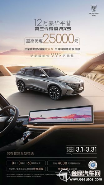 車內(nèi)中控、門板等用手能夠碰觸到的地方,采用軟性材質(zhì)進(jìn)行包覆,對(duì)于細(xì)節(jié)控來(lái)說(shuō)亦無(wú)可挑剔之處。全新第三代榮威RX5上配備的山水紋水晶球頭擋把,縱觀目前豪華SUV陣營(yíng),只有寶馬X5、沃爾沃XC90/S90等高配車型才有這樣的氣派。另外全艙采用98%豪華軟包覆內(nèi)飾,豪華感完全比肩豪華品牌凱迪拉克XT4。此外還有劇院級(jí)BOSE音響等一系列豪華配置。專設(shè)的獨(dú)立音區(qū),在娛樂(lè)聽歌時(shí),駕乘人員互不干擾。本次試駕之旅,讓我特別驚喜的是同級(jí)首創(chuàng)的27英寸4K全景智能交互滑移屏,幾乎要比BBA同款車型大上一倍,而且300mm的移動(dòng)距離非常新穎,也很方便。在我專注駕駛的時(shí)候,它可以滑到副駕一側(cè),讓副駕乘員可以攜助操控車機(jī)選項(xiàng)、調(diào)節(jié)空調(diào)、切換歌曲等。 五星守護(hù),出行無(wú)憂 除了出色的動(dòng)力性能和舒適的艙內(nèi)空間之外,全新第三代榮威RX5的安全性同樣不容小覷,全車采用超高強(qiáng)度籠式車身,整車高強(qiáng)度鋼占比高達(dá)79%,是同級(jí)最強(qiáng)車身強(qiáng)度。也正是這樣的安全守護(hù),讓我在尋跡長(zhǎng)沙煙火氣的路途中能更安心的駕駛。 值得一提的是,就在2月16日,全新第三代榮威RX5按照C-NCAP(2021版)管理規(guī)則完成了全部測(cè)評(píng)項(xiàng)目,毫無(wú)懸念的達(dá)到了C-NCAP“五星級(jí)”標(biāo)準(zhǔn),綜合得分率為88.6%,表現(xiàn)出色。全新第三代榮威RX5將安全呵護(hù)印刻到了“骨子里”,時(shí)刻貼心守護(hù)用戶的出行安全。 經(jīng)過(guò)長(zhǎng)沙站的品鑒體驗(yàn),可以說(shuō)全新第三代榮威RX5產(chǎn)品力在同級(jí)別中是遙遙領(lǐng)先,十分能打。此外,上汽榮威結(jié)合用戶實(shí)際需求,注重車輛的動(dòng)力性能、豪華舒適配置。為了給不同用戶提供更多的選擇方案,混動(dòng)車型——全新第三代榮威超混eRX5還能給用戶帶來(lái)更強(qiáng)動(dòng)力、更低油耗,以及超長(zhǎng)續(xù)航的更多選擇。目前正值上汽榮威特別答謝季,全新第三代榮威RX5卷王3月再卷價(jià)格風(fēng)云,限時(shí)9.99萬(wàn)起!這樣實(shí)惠的價(jià)格配上堪稱“卷王”的硬核實(shí)力,相信持幣待購(gòu)的你早已有了答案。 |