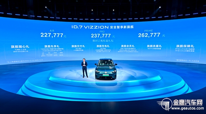 12月15日,一汽-大眾ID.7 VIZZION在佛山MEB智慧工廠正式發(fā)布。ID.7 VIZZION共推出四款車型,分別為AIR版227,777元,PRO版237,777元,PRIME版262,777元,*首發(fā)版230,777元。動(dòng)力方面,ID.7 VIZZION為用戶提供四驅(qū)、后驅(qū)兩種動(dòng)力形式。續(xù)航方面,共有長(zhǎng)續(xù)航642km與四驅(qū)版570km兩種綜合續(xù)航選擇。  【一汽-大眾汽車有限公司 商務(wù)副總經(jīng)理 聶強(qiáng) 現(xiàn)場(chǎng)公布價(jià)格及購(gòu)車權(quán)益】 當(dāng)前,中國(guó)新能源汽車市場(chǎng)已進(jìn)入高質(zhì)量發(fā)展新階段,區(qū)別于只關(guān)注“智能化“的功能設(shè)計(jì),中國(guó)消費(fèi)者的理念正在從早期先鋒嘗鮮向務(wù)實(shí)理性的趨勢(shì)轉(zhuǎn)變,安全、操控等汽車的傳統(tǒng)價(jià)值,被用戶重新重視起來。一汽-大眾ID.7 VIZZION不僅凝聚了大眾品牌的前沿科技,實(shí)現(xiàn)了智能化躍遷,也一直堅(jiān)守汽車傳統(tǒng)價(jià)值,以全維安全、主流智能、極致舒適,為國(guó)內(nèi)“務(wù)實(shí)向新”的新能源汽車消費(fèi)者帶來超越期待的出行體驗(yàn),正式邁向ID.家族2.0時(shí)代。 “大不一樣” ID. 2.0智能全面進(jìn)階 基于MEB平臺(tái)的四輪四角設(shè)計(jì),ID.7 VIZZION擁有1910mm同級(jí)最優(yōu)有效乘坐空間,1014mm最優(yōu)后排腿部空間及959mm頭部空間,后排的大腿支撐區(qū)域高達(dá)277mm,為駕駛員及后排乘客帶來“大不一樣”的舒適空間體驗(yàn)。 在造型設(shè)計(jì)上,ID.7 VIZZION車型采用了“自由之形”的設(shè)計(jì)理念,讓美學(xué)與功能實(shí)用也可兼得。更流暢的車身線條帶來0.23cd的更小風(fēng)阻,同級(jí)少有的超大掀背設(shè)計(jì)帶來1036mm的后備箱開口、521L超大后備箱空間及1629L后備箱延展空間。  【超大掀背設(shè)計(jì)】 ID.7 VIZZION共推出云杉青、楓葉紅、冰柏藍(lán)、銀樺灰、星黛藍(lán)、極地白、珠光白7種車身顏色,及云杉青、烏金黑、玄武黑、英石白、星耀黑5種內(nèi)飾顏色,以源自自然靈感的層林染色彩和層峰巖主題內(nèi)飾,給用戶帶來全新的個(gè)性體驗(yàn)。  【流暢的車身線條】 為滿足中國(guó)消費(fèi)者對(duì)“智能互聯(lián)”的高需求,ID.7 VIZZION首采大眾品牌多項(xiàng)技術(shù),實(shí)現(xiàn)智能座艙全面進(jìn)階。搭載15英寸智能2K懸浮屏,并首采大眾品牌全新一代車機(jī)操作系統(tǒng)ID. OS 2.0,UI界面設(shè)計(jì)更簡(jiǎn)潔、更符合當(dāng)下審美、車機(jī)操作體驗(yàn)也更流暢自如。其內(nèi)置ID. Mate AI智能管家及科大訊飛語音交互系統(tǒng),實(shí)現(xiàn)“可見即可說”,語音識(shí)別率可達(dá)99%以上,且對(duì)指令響應(yīng)時(shí)間只有423毫秒,文字上屏低于1秒,讓指令下達(dá)更便捷,徹底解放雙手。區(qū)別于普通的HUD,新車全系標(biāo)配AR HUD智能導(dǎo)視,通過雙層視覺信息,將導(dǎo)航信息與實(shí)景路面疊加,提供更清晰直觀的信息顯示及更廣闊的視野。  【15英寸智能2K懸浮屏及ID. Mate AI智能管家】 “步步到位” 高品質(zhì)基因鑄就價(jià)值旗艦 電動(dòng)車時(shí)代,到位的安全是核心。傳承大眾品牌安全和高品質(zhì)基因,ID.7 VIZZION以超高標(biāo)準(zhǔn)構(gòu)建車身安全、三電安全、駕駛安全、隱私安全等全方位的安全保障體系。車身安全方面,新車嚴(yán)格按照C-NCAP五星和C-IASI Good標(biāo)準(zhǔn)設(shè)計(jì)研發(fā),同時(shí)新車還歷經(jīng)73次整車碰撞試驗(yàn),整個(gè)試驗(yàn)過程耗費(fèi)32輛新車,以“萬全準(zhǔn)備”應(yīng)對(duì)“萬一可能”。ID.7 VIZZION采用高強(qiáng)度鋼鋁混合車身,高強(qiáng)度及超高強(qiáng)度鋼占比高達(dá) 81%,車身扭轉(zhuǎn)剛度超過46100N·m/deg,而獨(dú)有的“三明治”門檻結(jié)構(gòu)和兩根采用航母級(jí)材料的加強(qiáng)橫梁,為車身及電池提供雙重防護(hù)。  【ID.7 VIZZION高強(qiáng)度鋼鋁混合車身】 三電安全方面,ID.7 VIZZION對(duì)每個(gè)電芯都進(jìn)行了100%監(jiān)測(cè),單個(gè)電芯的控制參數(shù)超過6800個(gè),并且每個(gè)參數(shù)都比行業(yè)標(biāo)準(zhǔn)至少高出10%。新車采用“鎧甲電池”殼體機(jī)構(gòu),在抵御來自外界的撞擊同時(shí),還能夠隔絕來自電池內(nèi)部的起火風(fēng)險(xiǎn)。對(duì)于新能源消費(fèi)者格外關(guān)注的電池安全,ID.7 VIZZION從電芯、模組到電池包,進(jìn)行多達(dá)436項(xiàng)的安全測(cè)試,全方位守護(hù)電池安全,保障用戶的每一次出行。安全駕駛安全方面,其搭載的Travel Assist 3.0全旅程智能輔助駕駛系統(tǒng),新增了交互式變道輔助功能,當(dāng)駕駛員撥動(dòng)轉(zhuǎn)向撥桿時(shí),系統(tǒng)會(huì)在判斷道路環(huán)境安全的前提下?lián)駲C(jī)完成變道動(dòng)作。此外,新車還擁有21項(xiàng)主動(dòng)安全配置,覆蓋全旅程場(chǎng)景。  【ID.7 VIZZION 全方位守護(hù)電池安全】 提升駕乘體驗(yàn),到位的舒適是關(guān)鍵。新車首采Smart Air隱藏式智能空調(diào),通過陽(yáng)光智能感測(cè)器,感知光照、濕度及溫度,實(shí)現(xiàn)自動(dòng)上下擺風(fēng)、自動(dòng)左右調(diào)風(fēng)向、自動(dòng)化除霜除霧及自動(dòng)設(shè)定體感溫度22℃的四個(gè)自動(dòng)化。 SkyView智能光感天幕,首創(chuàng)7層結(jié)構(gòu)變色天幕,可達(dá)到83%的隔熱