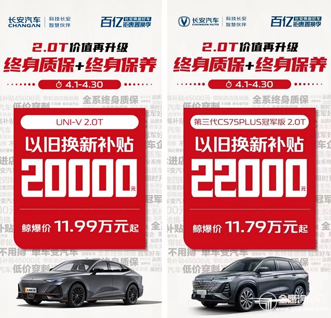 近日,長安汽車“2.0T價值再升級!終身質(zhì)保再送終身保養(yǎng)”活動開啟,為消費者準備了誠意十足的購車、用車權益。4月1日起,用戶購買其旗下UNI-V 2.0T及第三代CS75PLUS 冠軍版2.0T,這兩款搭載藍鯨2.0T+愛信8AT的冠軍動力組合車型,均可享受免費終身質(zhì)保及免費終身保養(yǎng)等禮遇。長安以越級品質(zhì)、“雙保無憂”的誠意,讓用戶買得更安心,用得更放心。