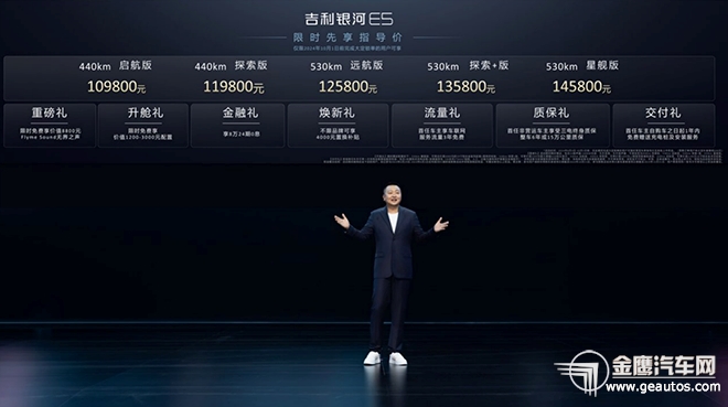 8月3日,吉利銀河系列首款純電SUV——“全球智享純電SUV”吉利銀河E5,在貴陽正式上市并將同步啟動首批車輛交付。新車共推出5個(gè)版型,限時(shí)先享指導(dǎo)價(jià)為10.98~14.58萬元,并推出豐厚的購車權(quán)益(僅限2024年10月1日前完成大定鎖單的用戶可享)。  發(fā)布會上,吉利汽車集團(tuán)CEO淦家閱發(fā)布吉利銀河全新價(jià)值主張“造每個(gè)人的智能精品車,為美好生活而來”。此舉意味著進(jìn)入新能源汽車大時(shí)代,吉利銀河基于“智能吉利2025”戰(zhàn)略成果,堅(jiān)持用更高的標(biāo)準(zhǔn),打造出高品質(zhì)的出行體驗(yàn),把美好生活帶給全球用戶。吉利銀河E5作為吉利協(xié)同全球研發(fā)能力,用全球化標(biāo)準(zhǔn)、全球化技術(shù),為全球用戶打造的高價(jià)值“智能精品車”,基于“五個(gè)第一”打造,將率先帶給全球A級純電SUV用戶買得安心、用得開心、開得放心、用得省心、坐得舒心的美好智能出行體驗(yàn),為用戶開啟長期價(jià)值。  同時(shí),淦家閱宣布吉利向行業(yè)開放新能源汽車隱藏式門把手解鎖的相關(guān)核心技術(shù),把這些關(guān)乎用戶安全的核心技術(shù)更多的分享到全行業(yè),共同推動新能源汽車的安全向上。 全球“年輕家庭第一純電SUV” “五個(gè)第一”成就A級純電市場的標(biāo)桿產(chǎn)品 一直以來,全球A級純電SUV市場都沒有一款讓消費(fèi)者都滿意的產(chǎn)品,造型、空間、智能、性能、節(jié)能等消費(fèi)者最關(guān)注的產(chǎn)品表現(xiàn),無法全部兼顧。吉利銀河E5作為吉利基于最強(qiáng)智能新能源體系力,為全球“進(jìn)階生活新E代”群體打造的“六邊形戰(zhàn)士”,擁有安全標(biāo)準(zhǔn)同級第一、空間體驗(yàn)同級第一、舒適駕控同級第一、整車能耗同級第一、智能座艙同級第一的全能表現(xiàn),讓全球年輕家庭都可以擁有安心、開心、放心、省心、舒心的智能新能源精品出行體驗(yàn)。  造型融合全球?qū)徝篮蜄|方文化 內(nèi)飾主張“舒服出行” 吉利銀河E5以全球共性審美和需求為思考原點(diǎn),以全球各時(shí)區(qū)的都市生活為靈感,帶來霞光紅、流光銀、曙光白,以及消費(fèi)者呼聲很高的午夜黑、極夜青等8種極富想象空間的唯美車身色。同時(shí),銀河E5從中國瓷器汲取設(shè)計(jì)靈感,將全球?qū)徝篮蜄|方文化完美融合,前臉保留品牌超級符號“光之漣漪”,并采用虎式前臉、旭日東升貫穿式尾燈、飛檐虎式前大燈等廣受好評的設(shè)計(jì)元素,以全新設(shè)計(jì)的靈動型面,描繪出“氣韻生動”的視覺體驗(yàn)。  銀河E5的座艙堅(jiān)持“以人為本”的設(shè)計(jì),添翼副儀表臺采用致敬中國太師椅的全新挑高設(shè)計(jì),支撐性更強(qiáng),出行體驗(yàn)更舒適;256色炫彩背照式氛圍燈不僅可跟隨駕駛模式切換燈效,停車開門時(shí),若后方有車輛或行人靠近,門板氛圍燈甚至?xí)瞄W爍的紅色進(jìn)行提醒。
