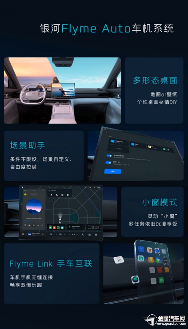 智能座艙同級第一 讓用戶坐的舒心 銀河E5搭載吉利自研的銀河Flyme Auto車機(jī)系統(tǒng)。銀河Flyme Auto車機(jī)系統(tǒng)基于魅族Flyme操作系統(tǒng)多年的積累,在吉利自研7nm車規(guī)級芯片“龍鷹一號”的支持下,反應(yīng)快、不卡頓,靈活跳轉(zhuǎn),易上手、生態(tài)廣,還聰明。 獨(dú)有的“小窗模式”和“SmartBar”靈動島,能解決大量“臨時(shí)性”交互需求,并可放大縮小,,讓銀河E5真正做到車機(jī)和手機(jī)一樣好用。  Flyme Sound無界之聲配備同級唯一的16揚(yáng)聲器,結(jié)合1000W獨(dú)立功放,瑞聲和WANOS全景聲的聯(lián)合調(diào)校,坐在任何一個(gè)座位,都能擁有音樂廳式的高品質(zhì)沉浸聽覺體驗(yàn)。 吉利銀河E5作為吉利協(xié)同全球研發(fā)能力,匯聚全球頂尖設(shè)計(jì),整合全球化標(biāo)準(zhǔn)、全球化技術(shù),為全球用戶打造的高品質(zhì)“智能精品車”,不僅豐滿了吉利銀河系列“電混+純電”、“轎車+SUV”的產(chǎn)品布局,對主流新能源市場形成覆蓋,也表明吉利銀河系列將持續(xù)以“高質(zhì)優(yōu)價(jià)”的產(chǎn)品,滿足最廣大消費(fèi)者的美好出行需求,而左右舵同步開發(fā),面向全球發(fā)售,也展現(xiàn)出吉利參與全球競爭的實(shí)力和底氣。 同時(shí),吉利汽車也憑借最全面、最領(lǐng)先的電動化和智能化體系力“全面向新”,完成新能源轉(zhuǎn)型的基本投入期,進(jìn)入爆發(fā)“臨界點(diǎn)”。隨著銀河E5的全球上市,吉利將引領(lǐng)中國新能源汽車以高價(jià)值、高標(biāo)準(zhǔn)的產(chǎn)品和體系正向競爭,保持全球領(lǐng)先優(yōu)勢。