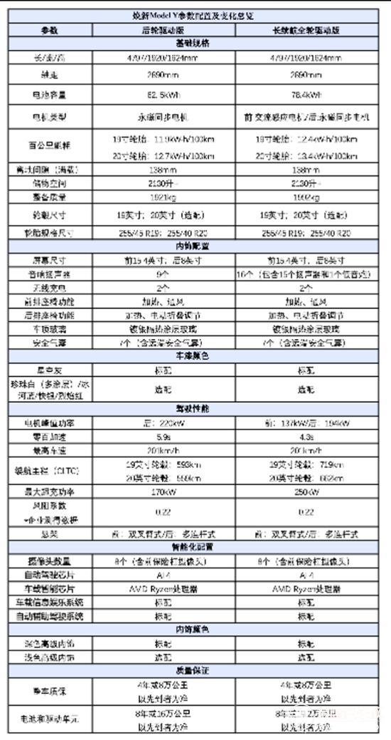 1月10日,煥新Model Y正式登陸特斯拉中國官網(wǎng),同時上線首發(fā)版車型,預(yù)售價26.35萬元起,在外觀、座艙、續(xù)航等方面均迎來升級,安全、智能等硬核產(chǎn)品實力進一步提升。  (煥新Model Y售價)  (煥新Model Y參數(shù)配置及變化總覽) 在外觀方面,煥新Model Y借鑒了賽博越野旅行車、賽博無人電動車中的設(shè)計靈感,整車造型更硬朗,線條更流暢。車輛前保險杠、后視鏡上全新的線條設(shè)計,可以“切開”氣流,結(jié)合全新輪轂造型、后擴散器,實現(xiàn)低風阻與升力的完美平衡,打造出0.23Cd的低風阻車身。尾部更是搭載了全球首創(chuàng)的漫反射式尾燈,這將成為煥新Model Y最具辨識度的外觀標識之一。搭配新增的全新冰河藍車漆,視覺張力拉滿。