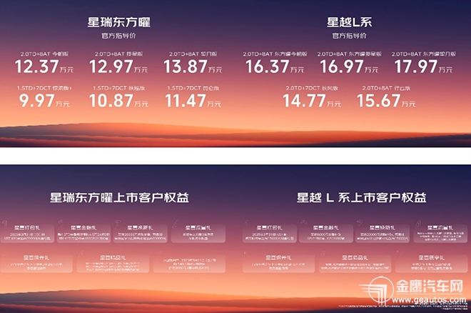 2025年3月20日,文旅中國(guó)探索計(jì)劃第三季之京杭大運(yùn)河奇妙夜暨中國(guó)星雙旗艦加新上市發(fā)布會(huì)在杭州舉行,融會(huì)古風(fēng)詩(shī)意與現(xiàn)代科技,演繹跨越時(shí)光的文化盛宴。發(fā)布會(huì)上,星瑞東方曜新增驚鴻版+及今朝版,官方指導(dǎo)價(jià)9.97萬(wàn)元、12.37萬(wàn)元;星越L推出行云版與東方曜今朝版,官方指導(dǎo)價(jià)15.67萬(wàn)元、16.37萬(wàn)元。 即日起購(gòu)買(mǎi)星瑞東方曜驚鴻版+、今朝版車(chē)型限時(shí)享至高7000元現(xiàn)金紅包禮,購(gòu)買(mǎi)星越L系車(chē)型限時(shí)享至高15000元現(xiàn)金紅包禮,以及金融、煥新、質(zhì)享、保養(yǎng)、精品、流量等多重購(gòu)車(chē)權(quán)益。